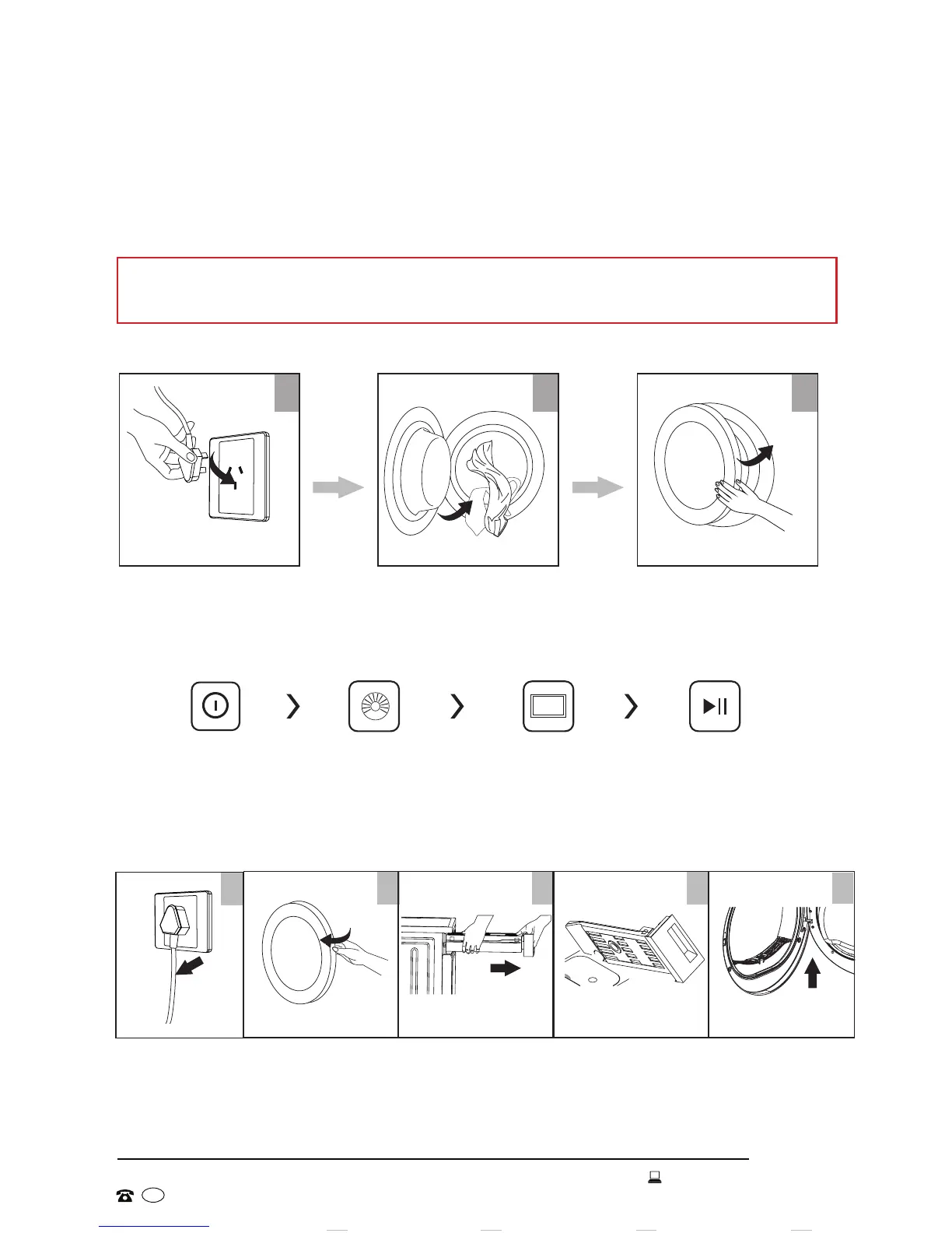 Unplug and Open the door and Pull out Pour out the Clean the filter