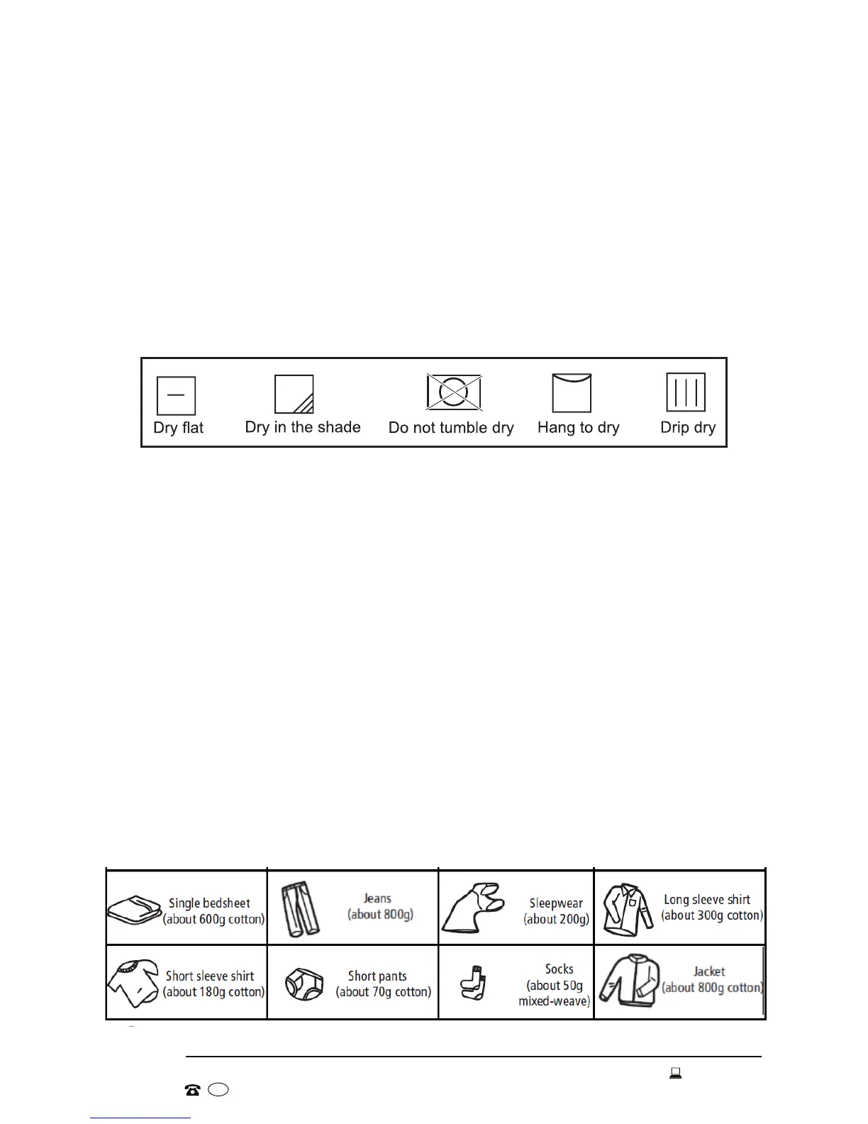 • Check and ensure that none of the items to be dried have the following symbols