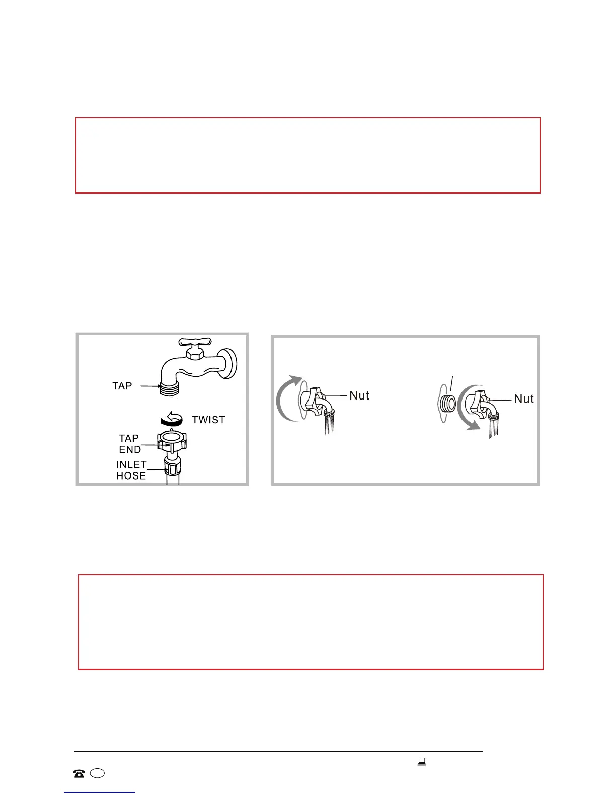 • Attach the other end of the hose to the inlet valve of the washing machine. Tighten