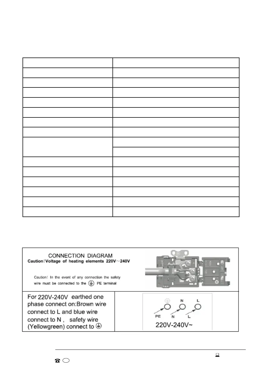 Rated voltage / frequency 220–240V ~ 50–60Hz