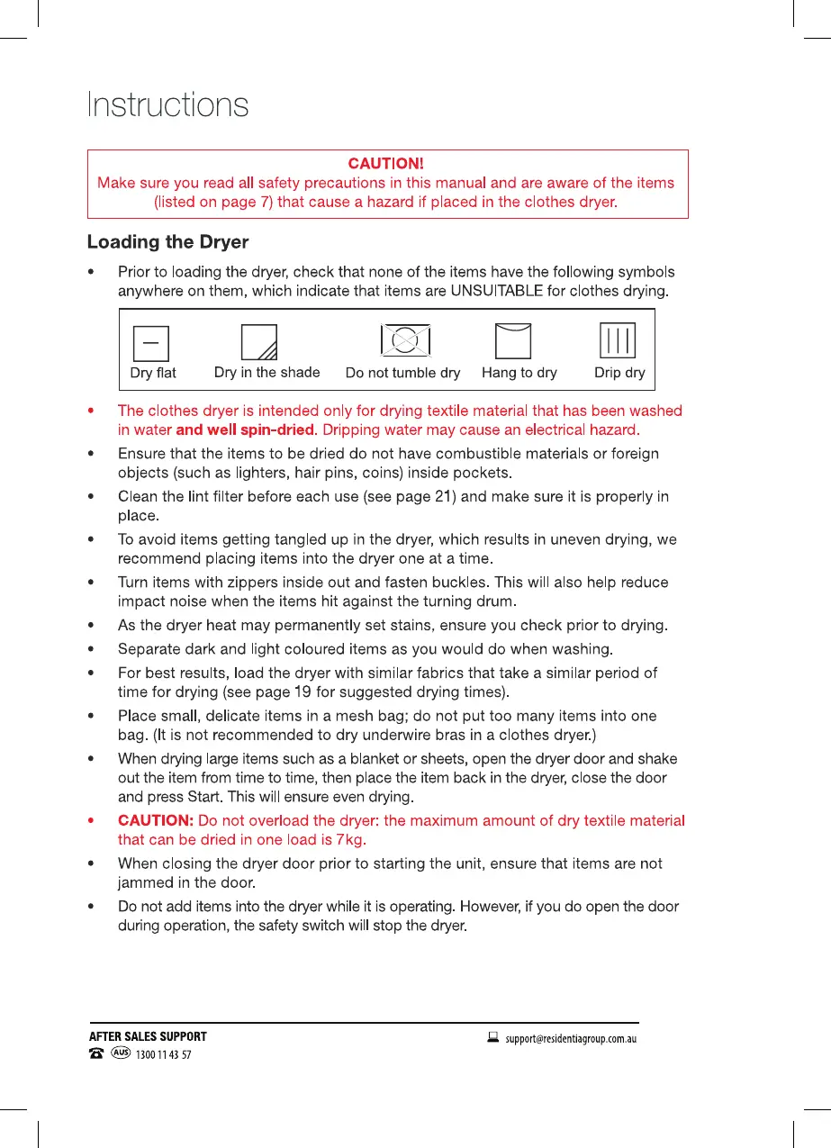 Stirling SVDM70 - Using the Dryer; Loading the Dryer