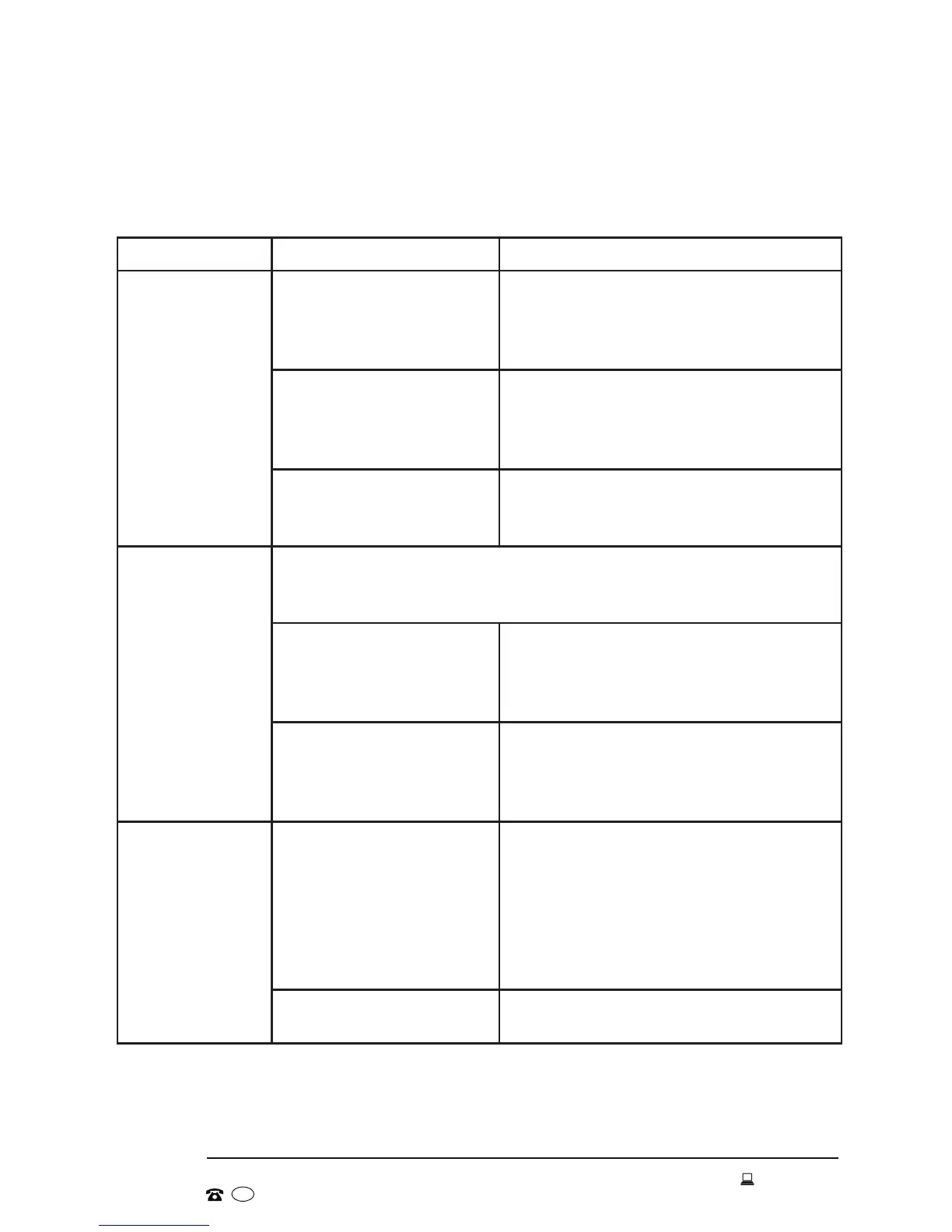 The table below lists possible causes and solutions for common problems that you