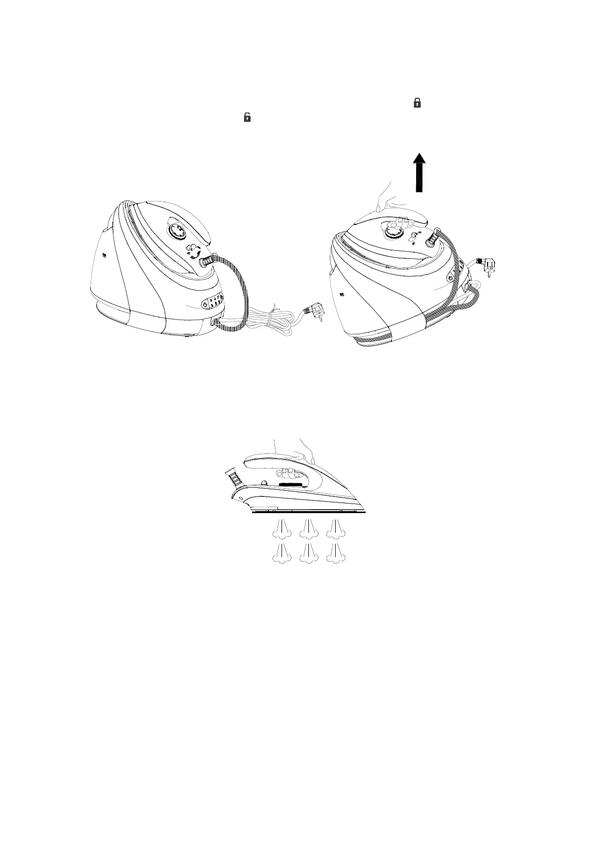 whole steam station can be lifted up by grasping the iron’ s handle after the iron being properly locked on the unit