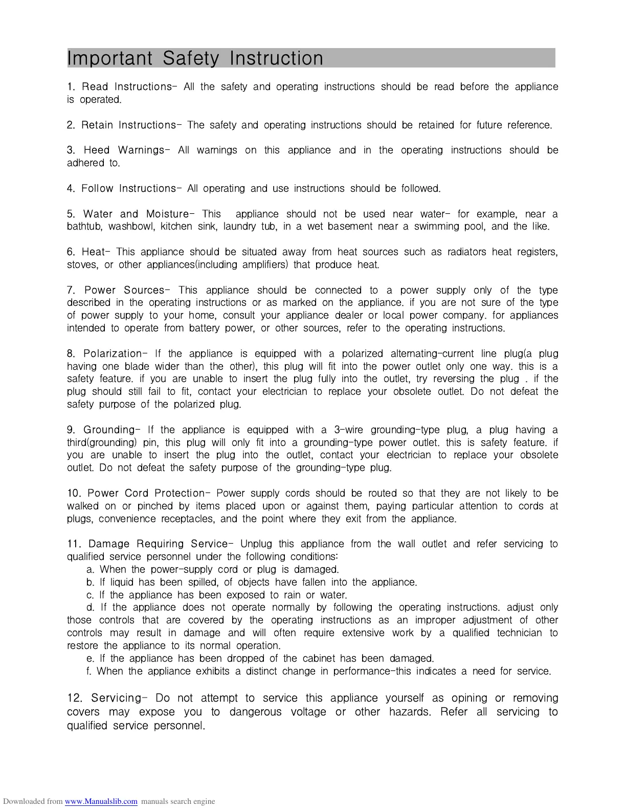Important Safety Instruction
