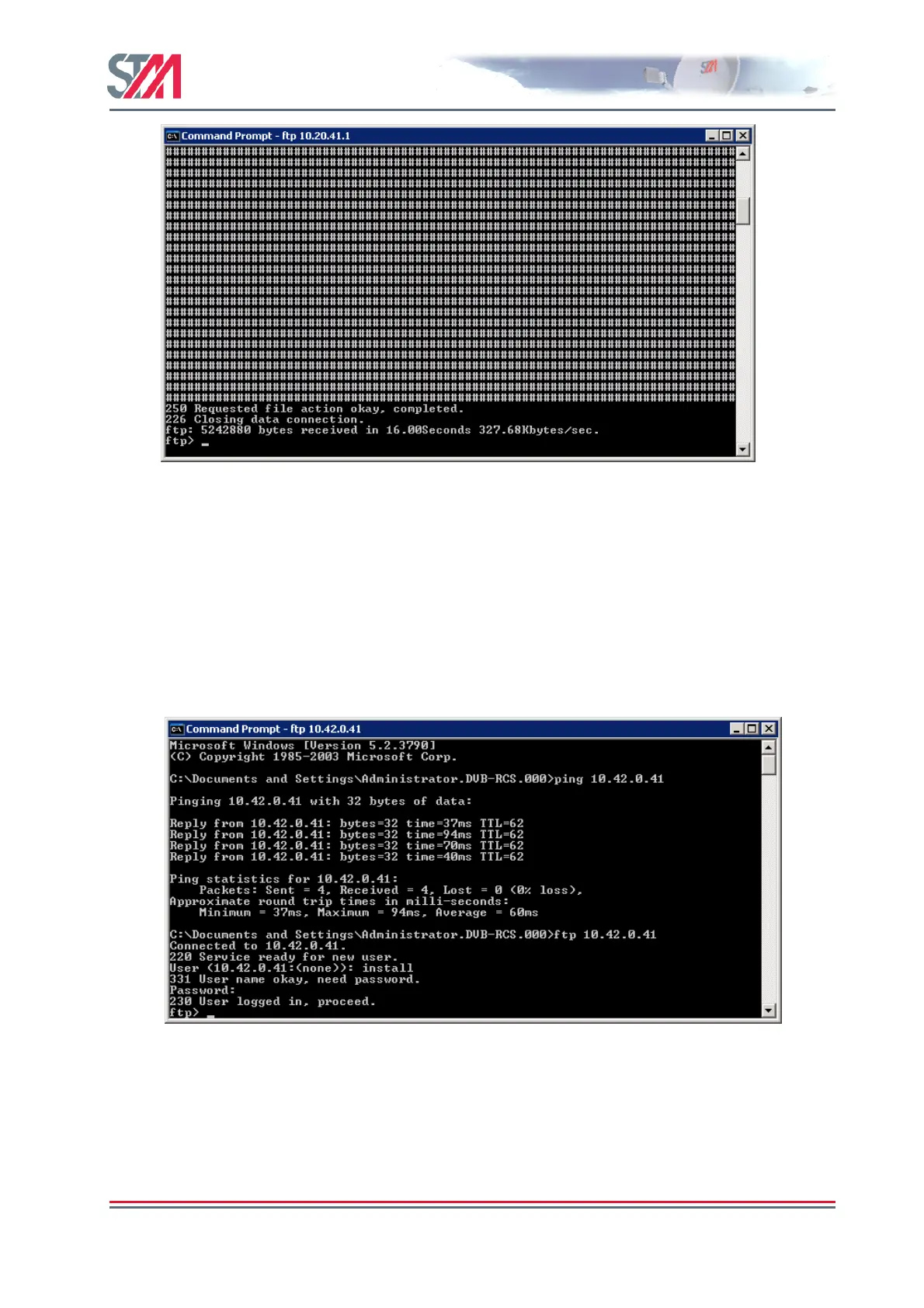 2. From a workstation on the HUB side, log on to the VSAT using DOS prompt and the FTP