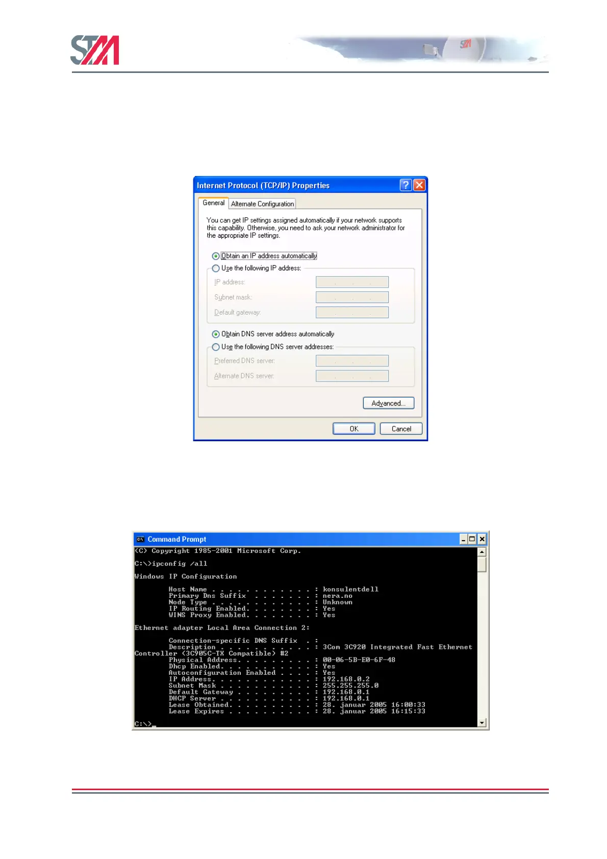 server address automatically. Figure 11 shows the correct Windows XP configuration when the DHCP
