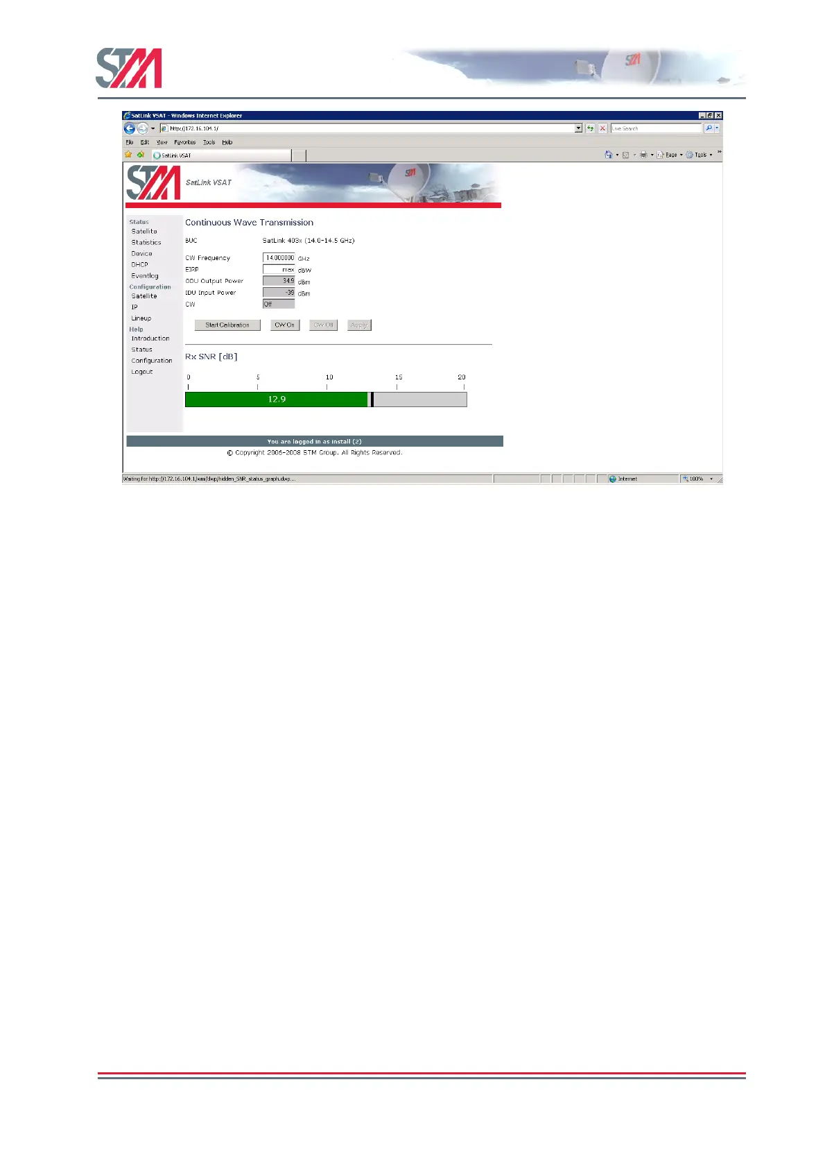 calibration and fine adjustment and verification of polarization of the STM SatLink VSAT.