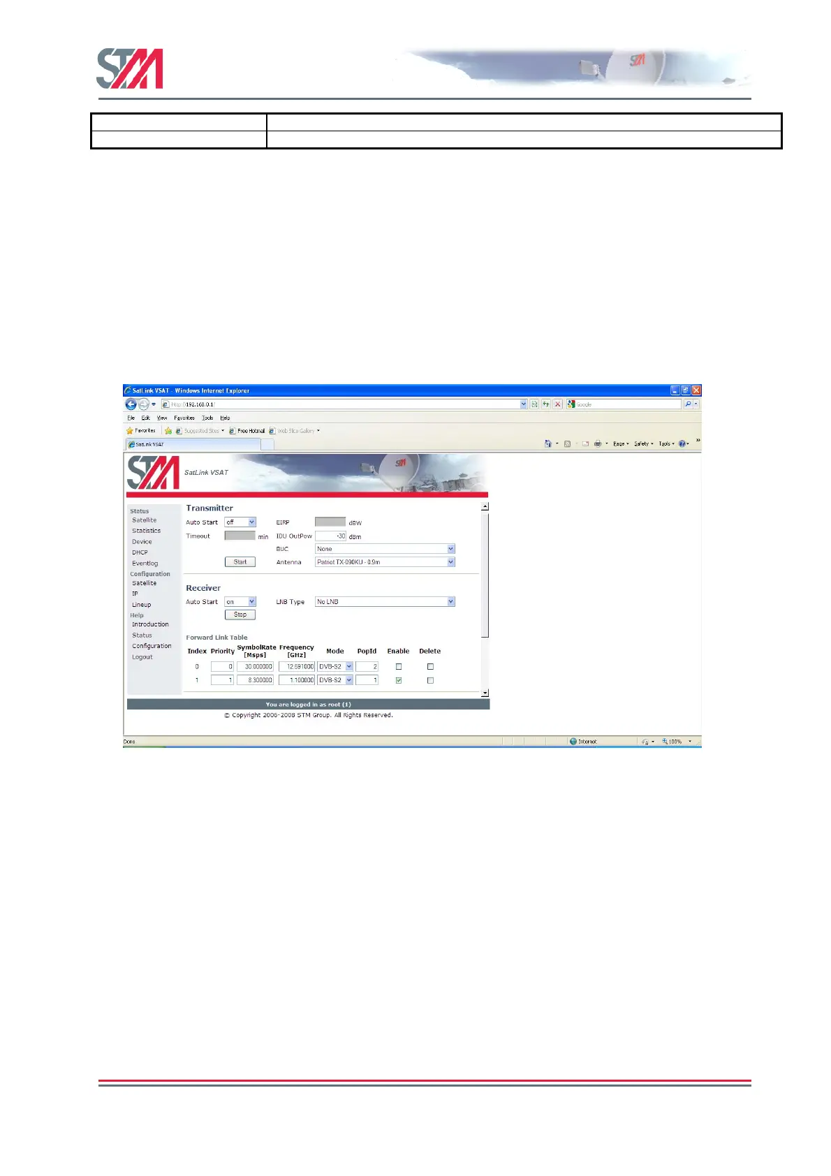 The STM SatLink VSAT is normally pre-configured to be used together with the STM SatLink 403x