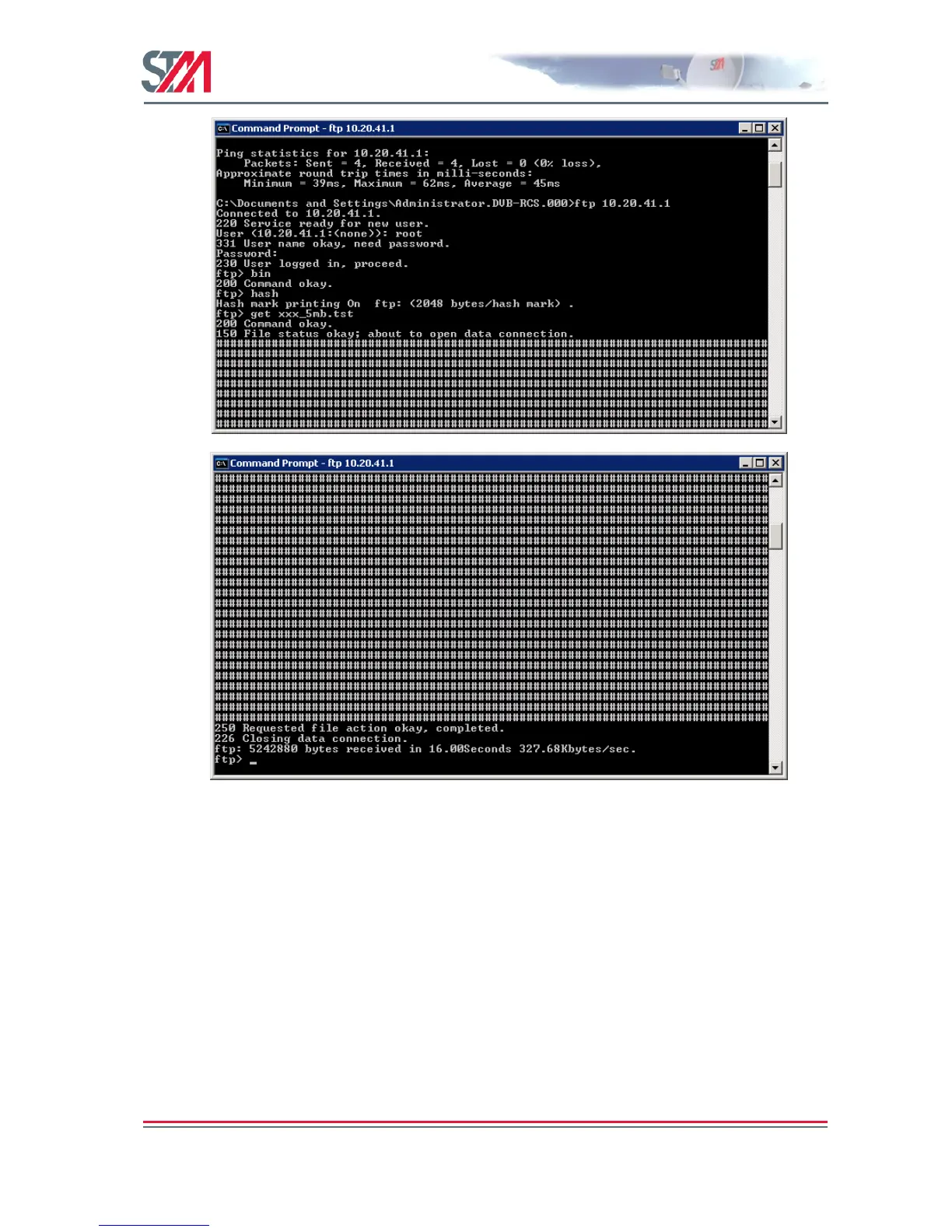 2. From a workstation on the HUB side, log on to the VSAT using DOS prompt and the FTP