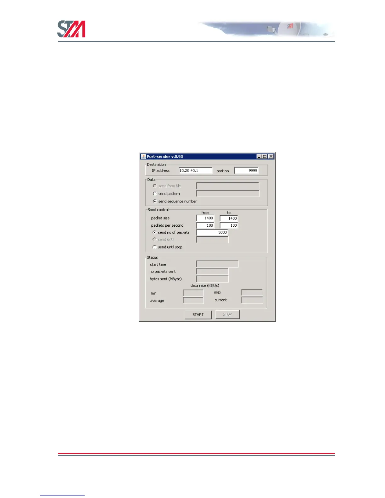 1. Configure the port sender for IP address, port number, packet size, packets per second, and