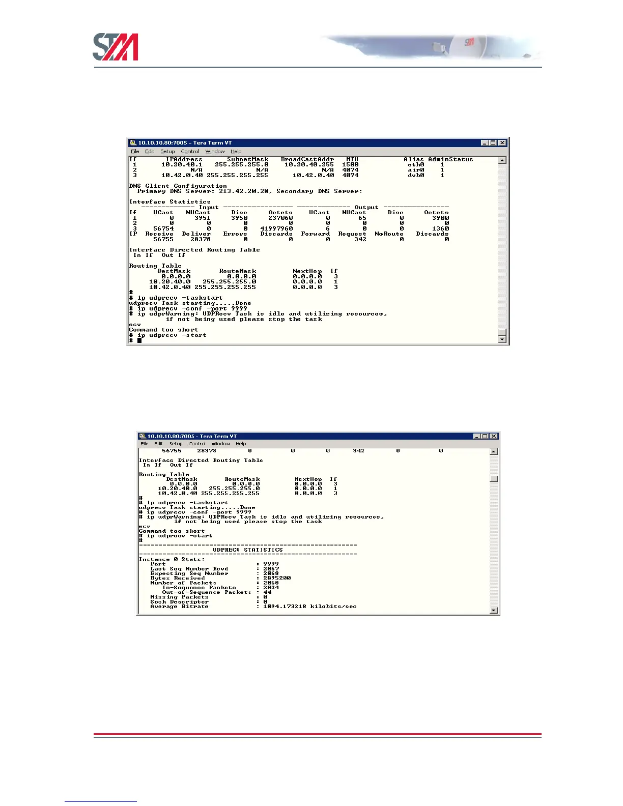 4. Type the command ip udprecv –start and click the start button on the port sender to start