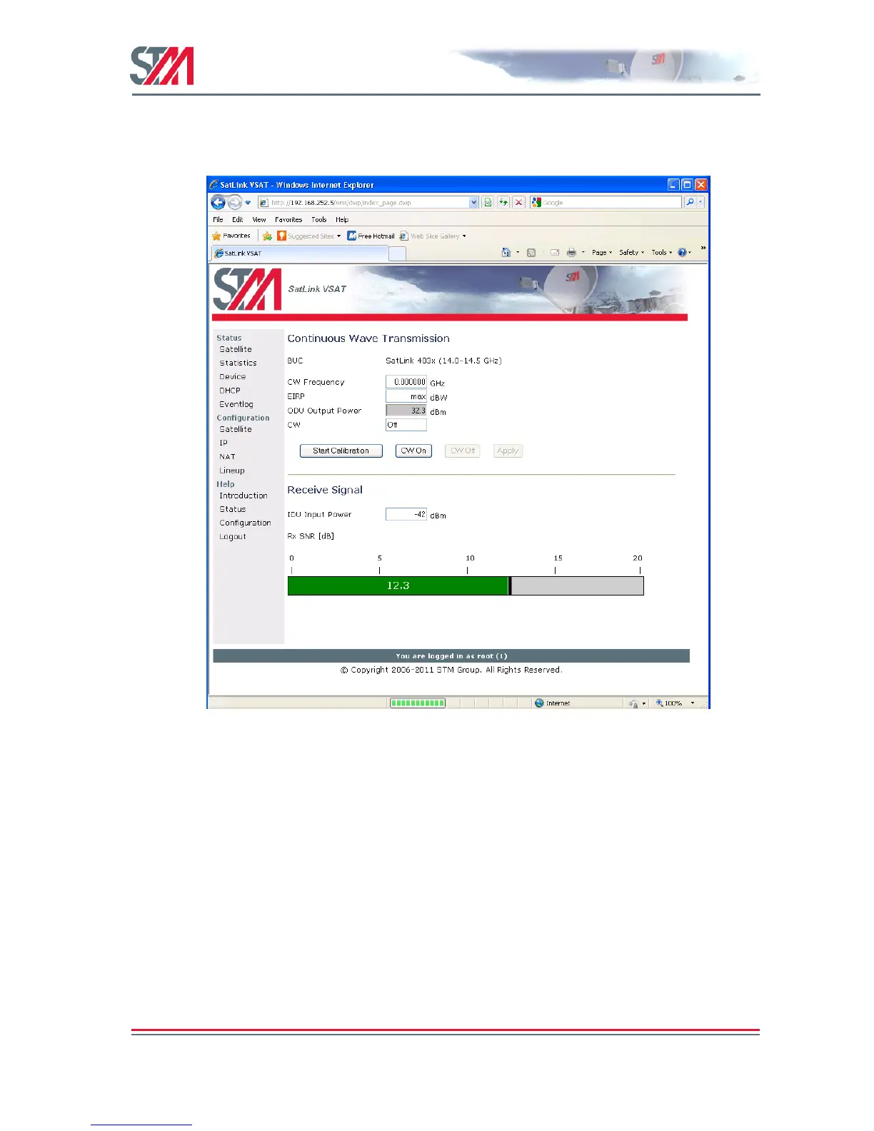 The VSAT can either be configured to transmit at maximum level or alternatively the desired EIRP