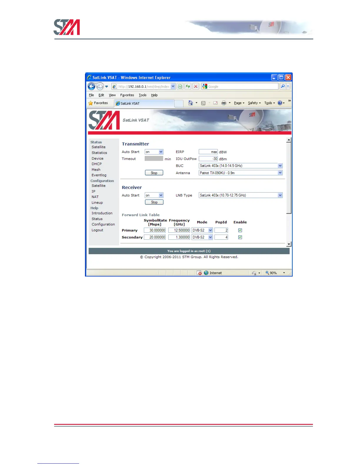 2) Configure the VSAT to automatically start the transmitter by setting the Auto Start to ―ON‖.
