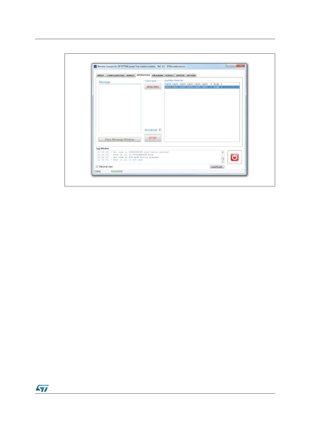 As soon as the send message is sent, the green LED of the module connected to the GUI is