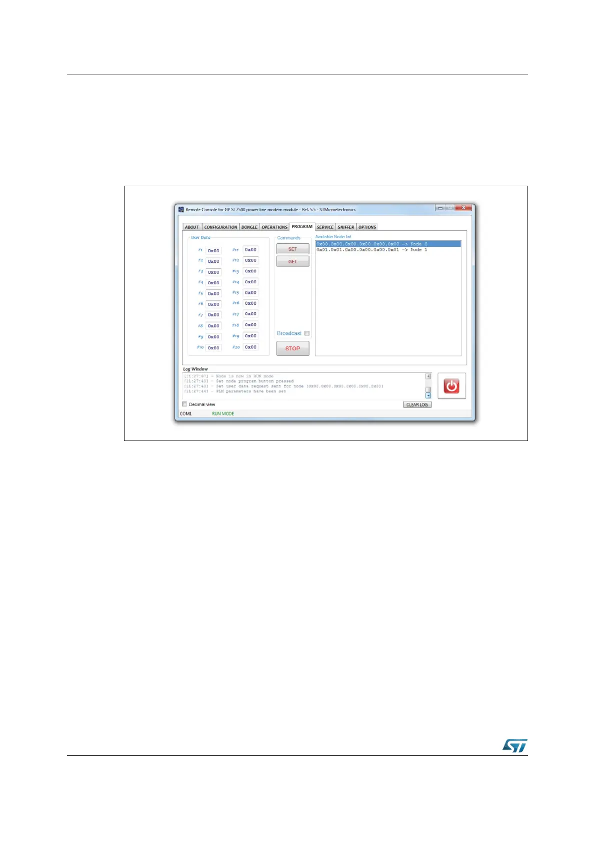 The PROGRAM tab shown in Figure 15 is used to store permanently user data in the