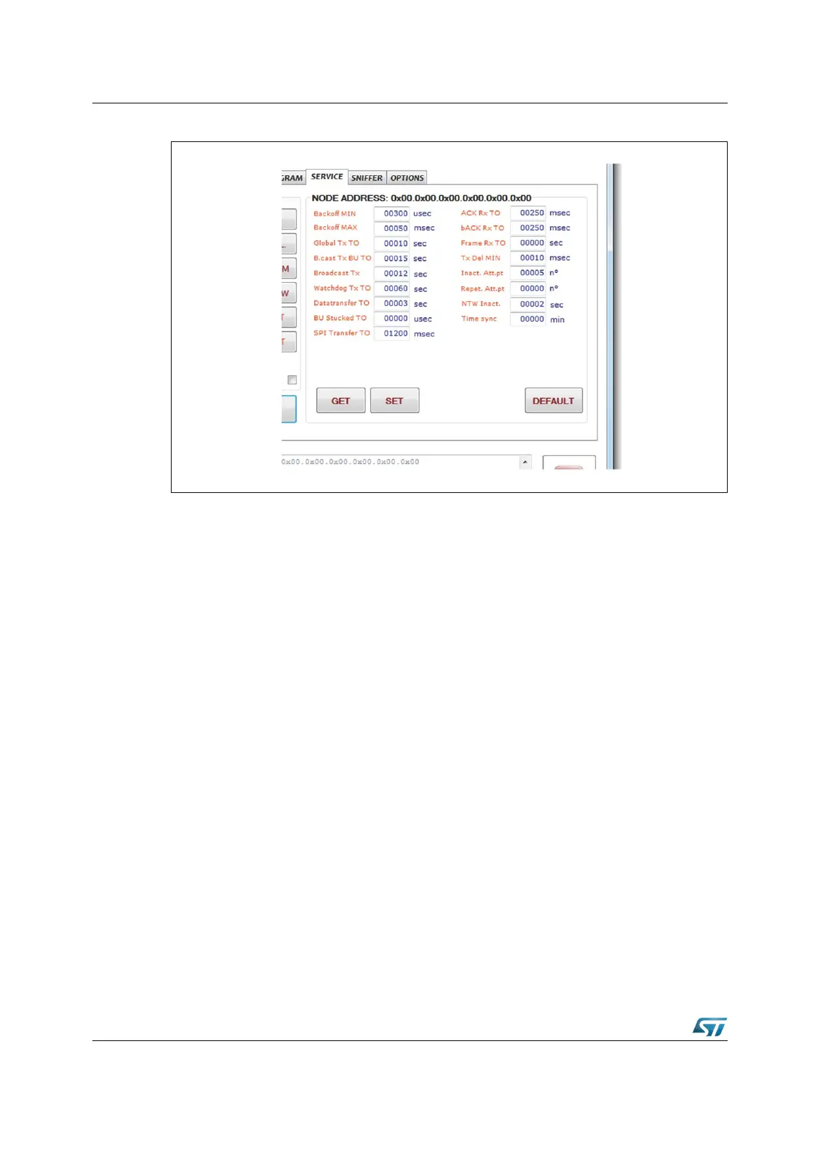and press the SET button to send the parameters to the addressed node (the selected node