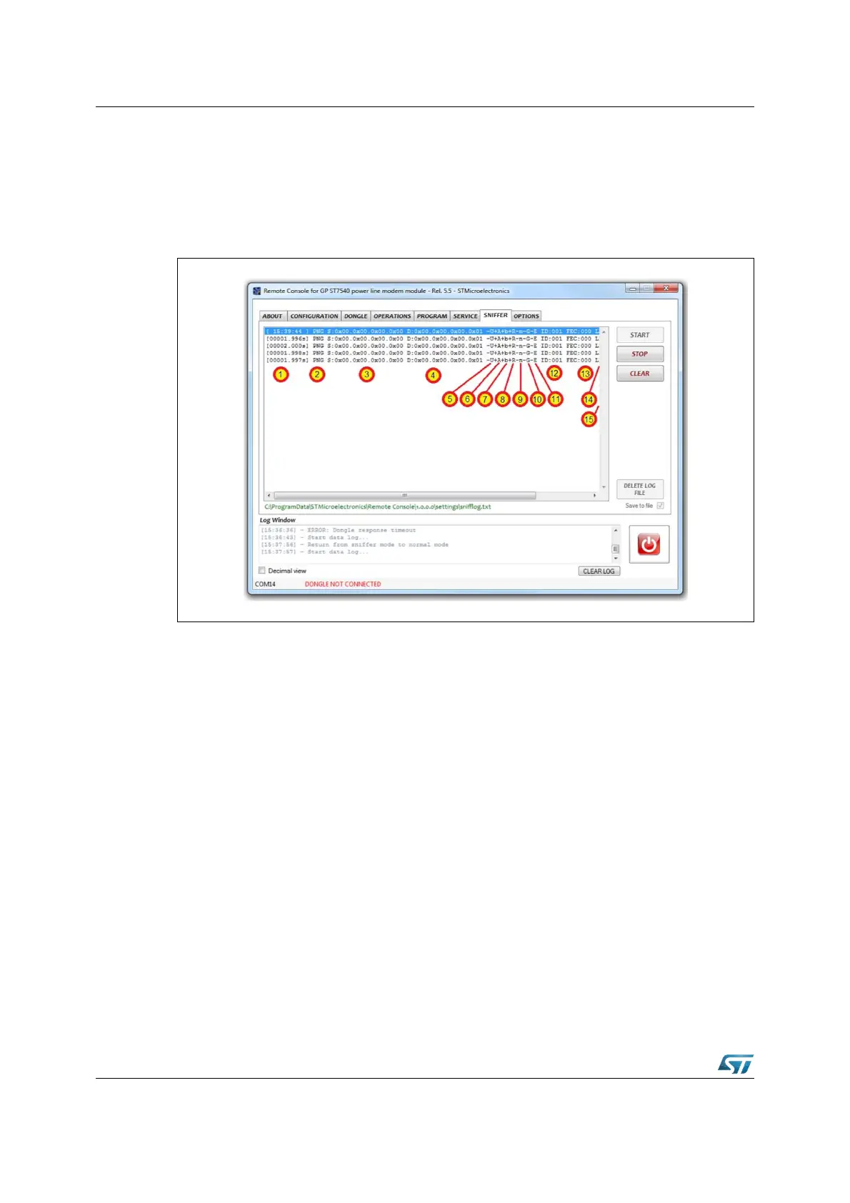 The STOP button stops data acquisition without to losing previously sniffed data, appends