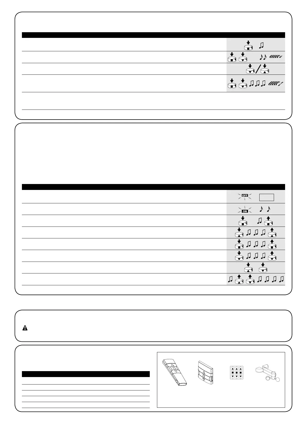 Attention: Pour les programmations, utiliser uniquement les émetteurs mémorisés en mode I.