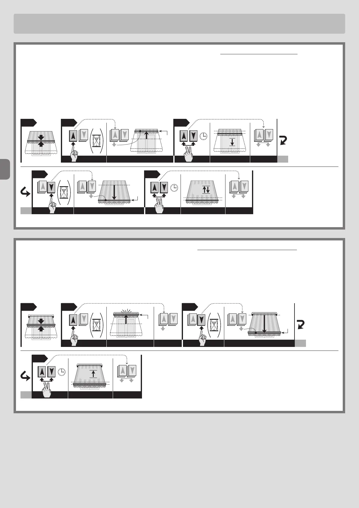 Letop! • Deze programmering is geschikt voor zonwering zonder kast. • Het is mogelijk aan het begin de bovenste eindaanslag (0) of de onderste eind-
