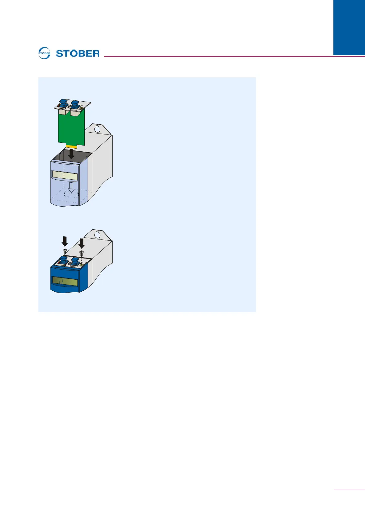 4. Insert the option PCB in the inverter so that the gold contacts slide into the