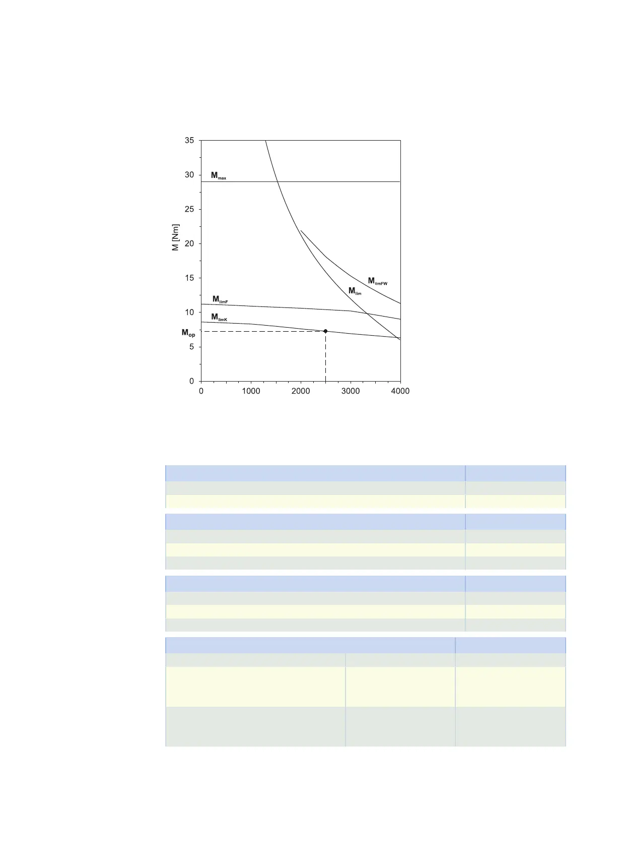 can be found in the motor characteristic curve in the chapter Torque/speed curves. Note the size, nominal