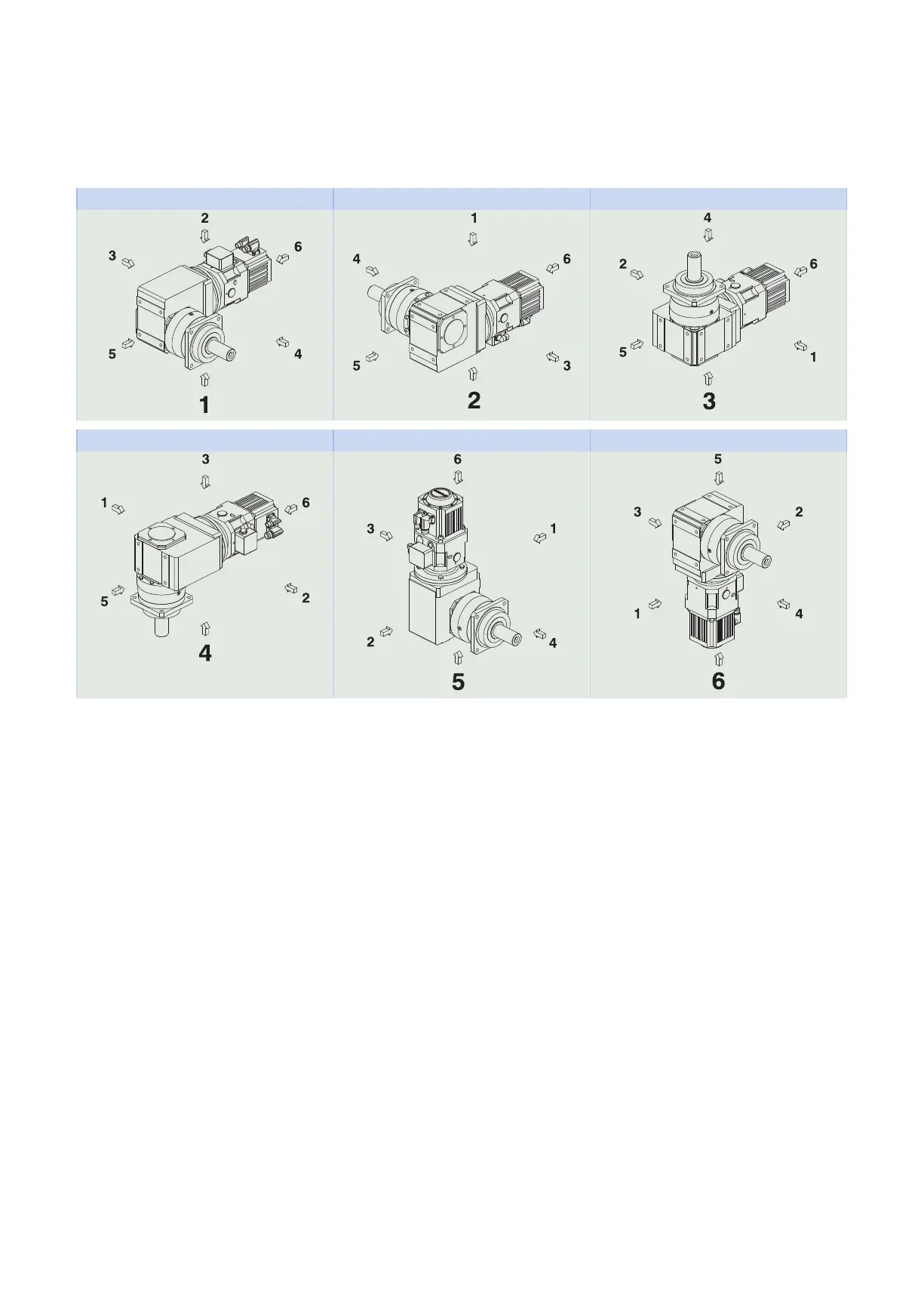 The numbers identify the gear unit sides. The mounting position is defined by the gear side facing down-