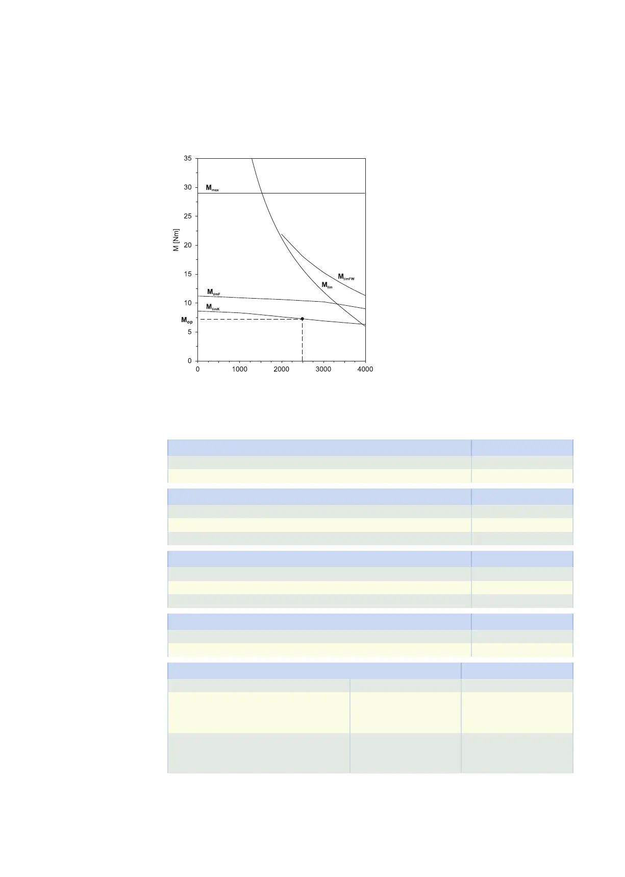 can be found in the motor characteristic curve in the chapter Torque/speed curves. Note the size, nominal