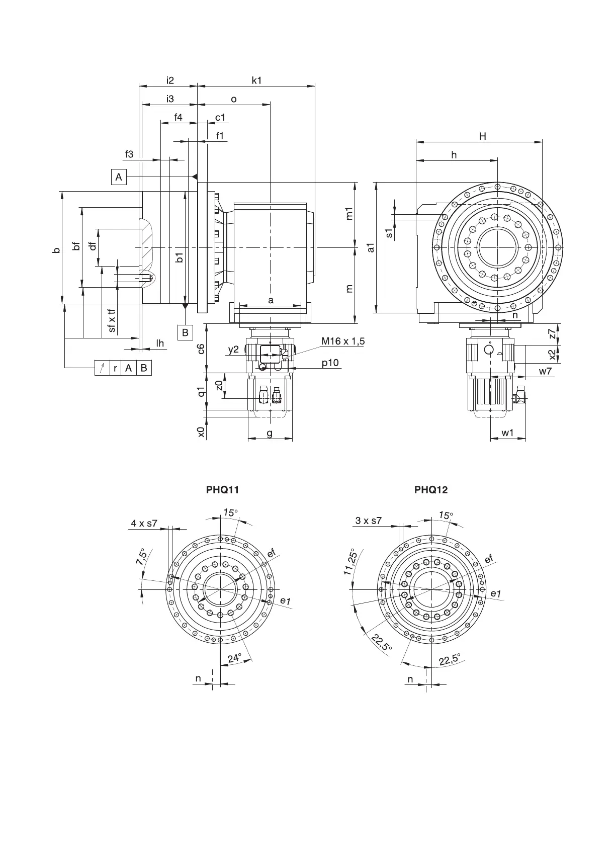Stober PK - PHQ11 − PHQ12 F Shaft Design (Flange Shaft)