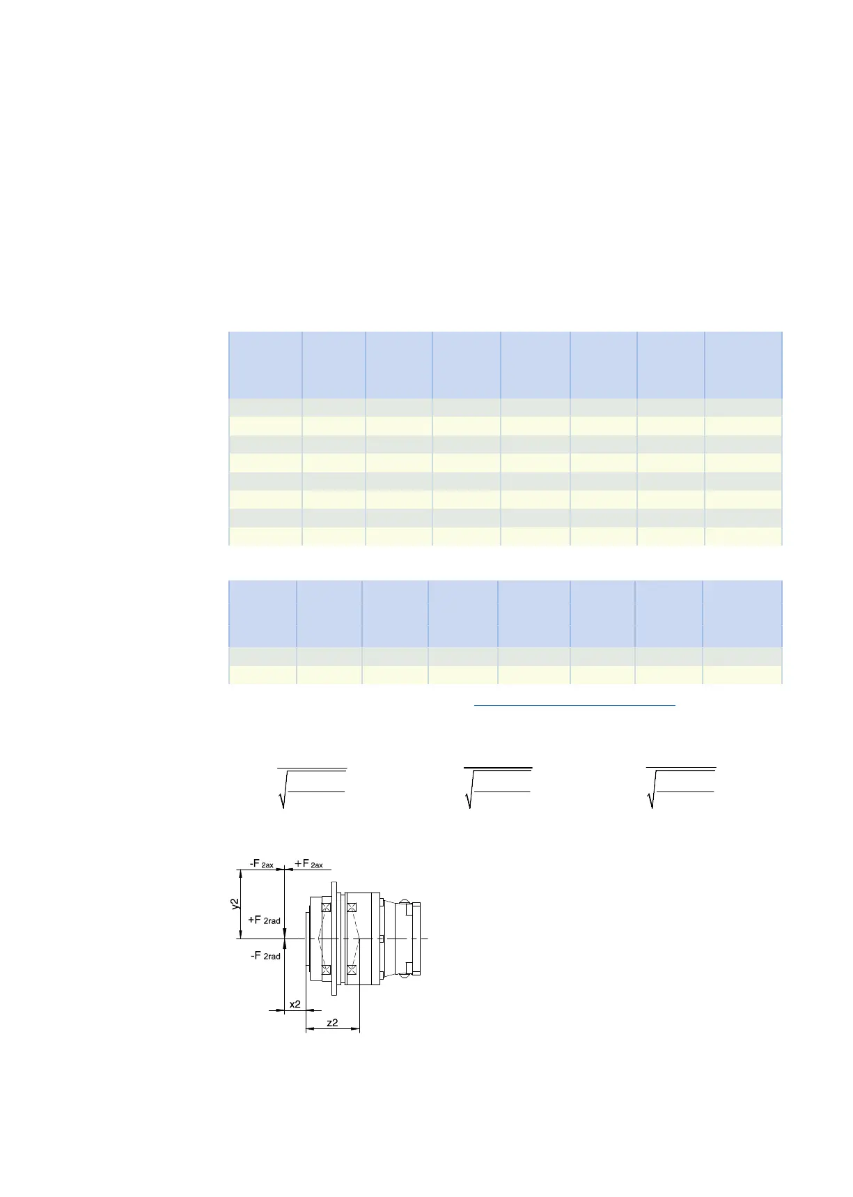 The values specified in the tables apply to the permitted shaft loads: