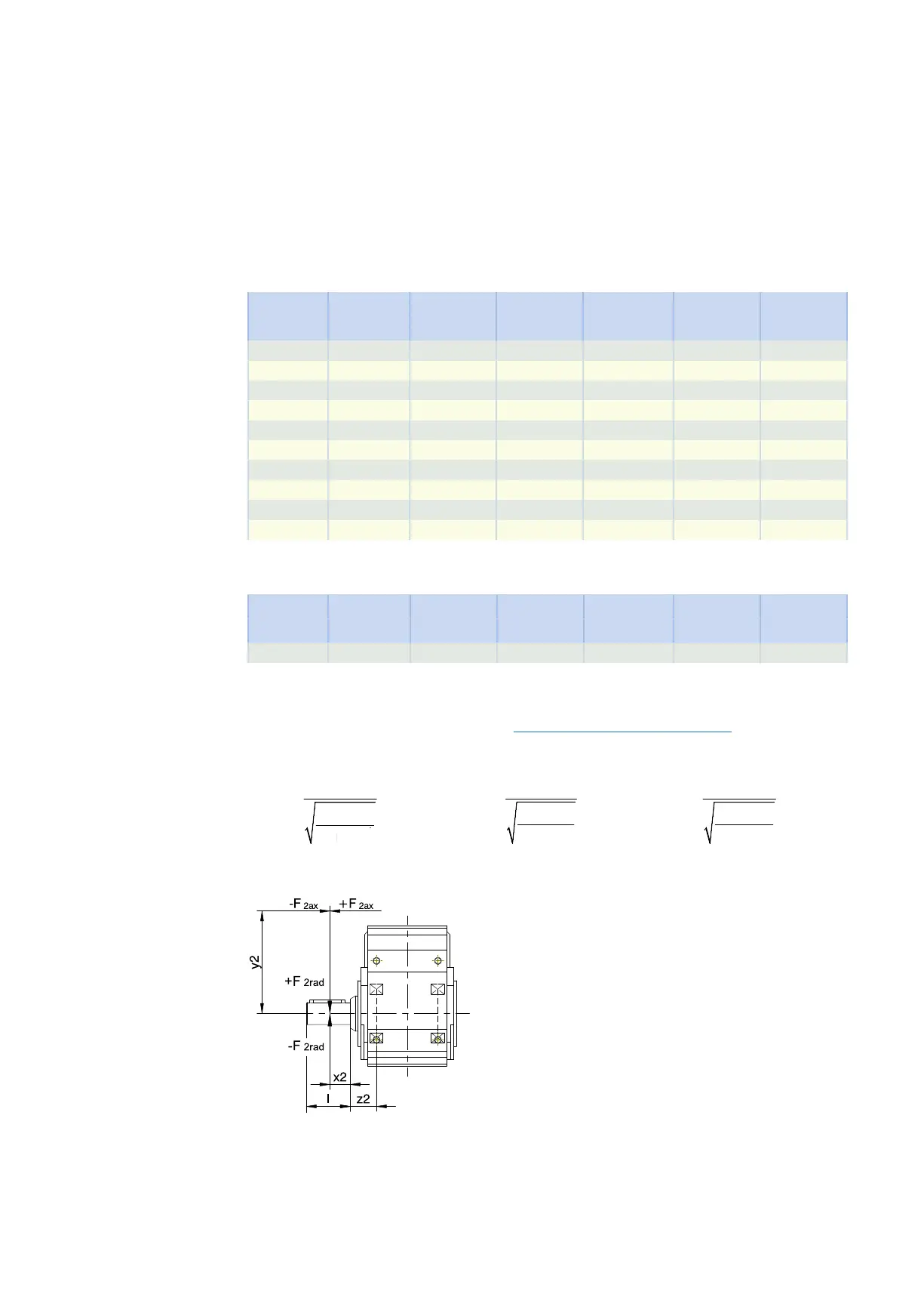 The values specified in the tables apply to the permitted shaft loads: