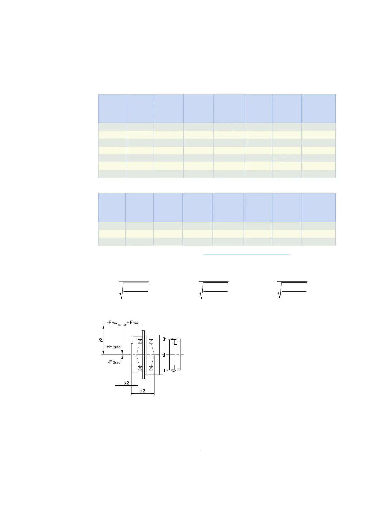 The values specified in the tables apply to the permitted shaft loads:
