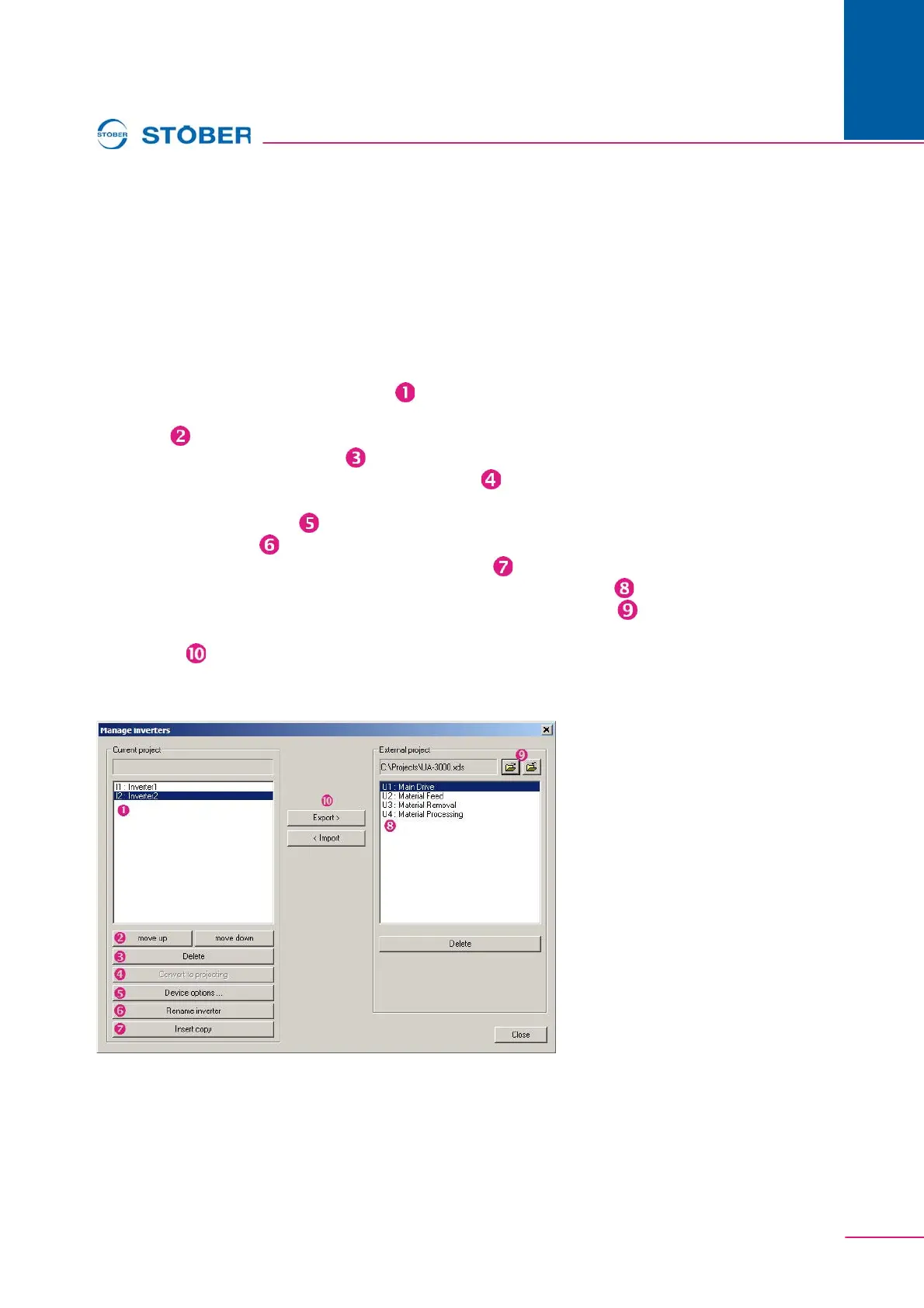 this menu item, the dialog screen Manage inverters from appears.