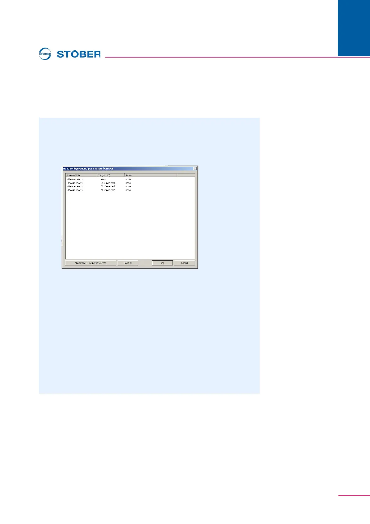 1. In the IGB: display connected devices dialog screen, click the read from