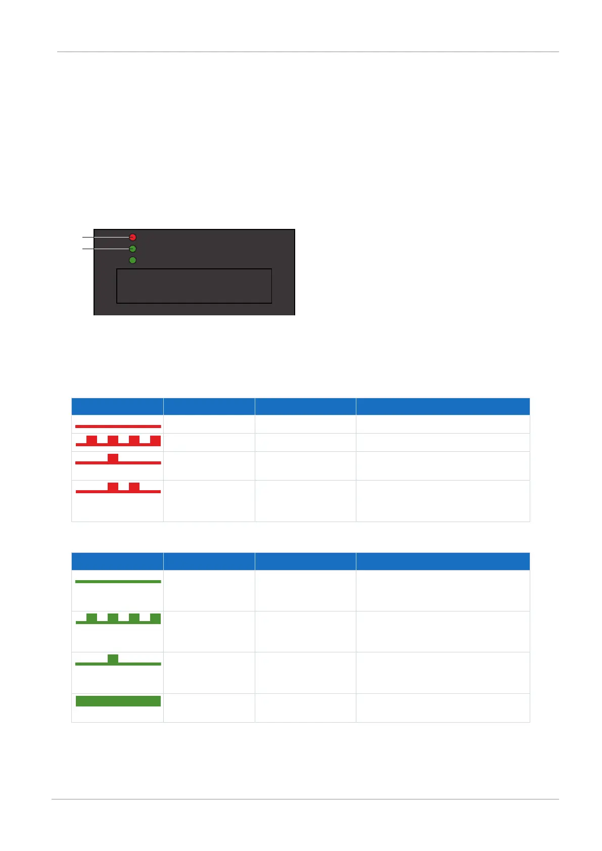 The LEDs for the diagnostics of the fieldbus state vary depending on the implemented fieldbus system or communication