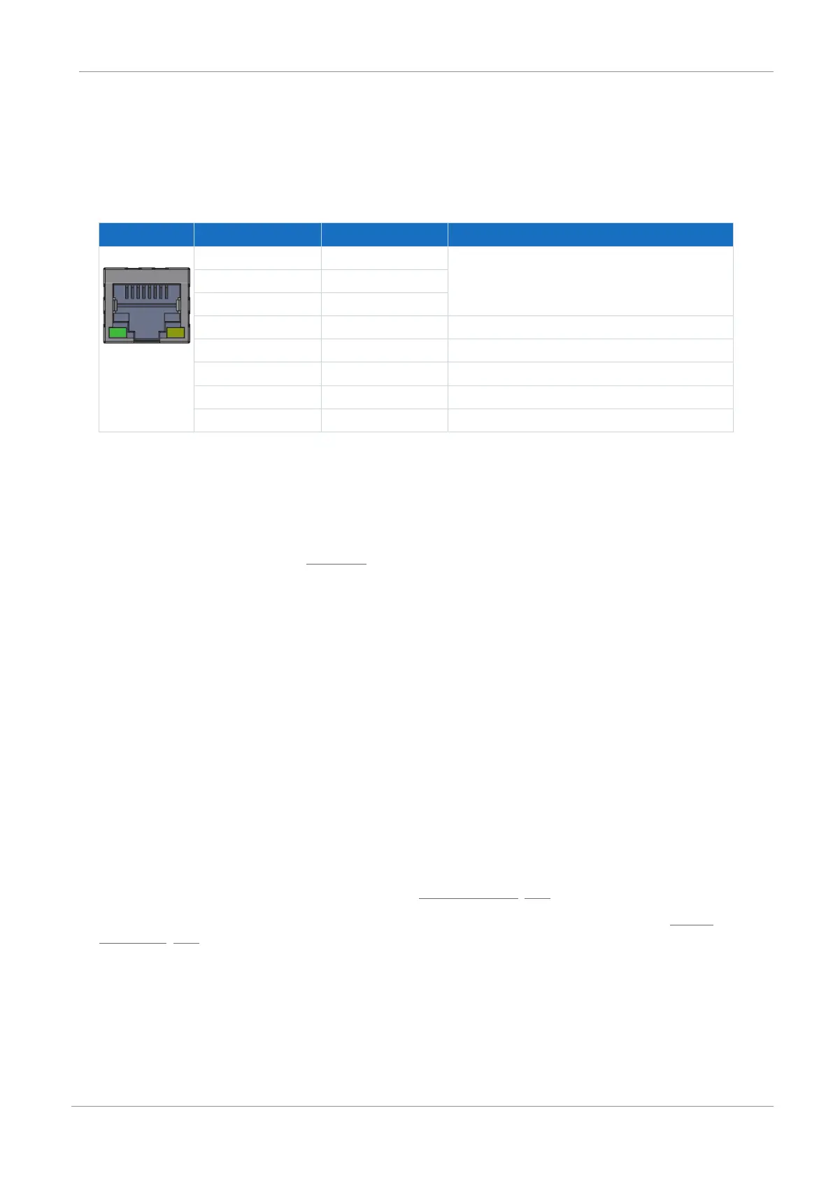 RJ-45 sockets is provided. The sockets are located on top of the device. The associated pin assignment and color coding