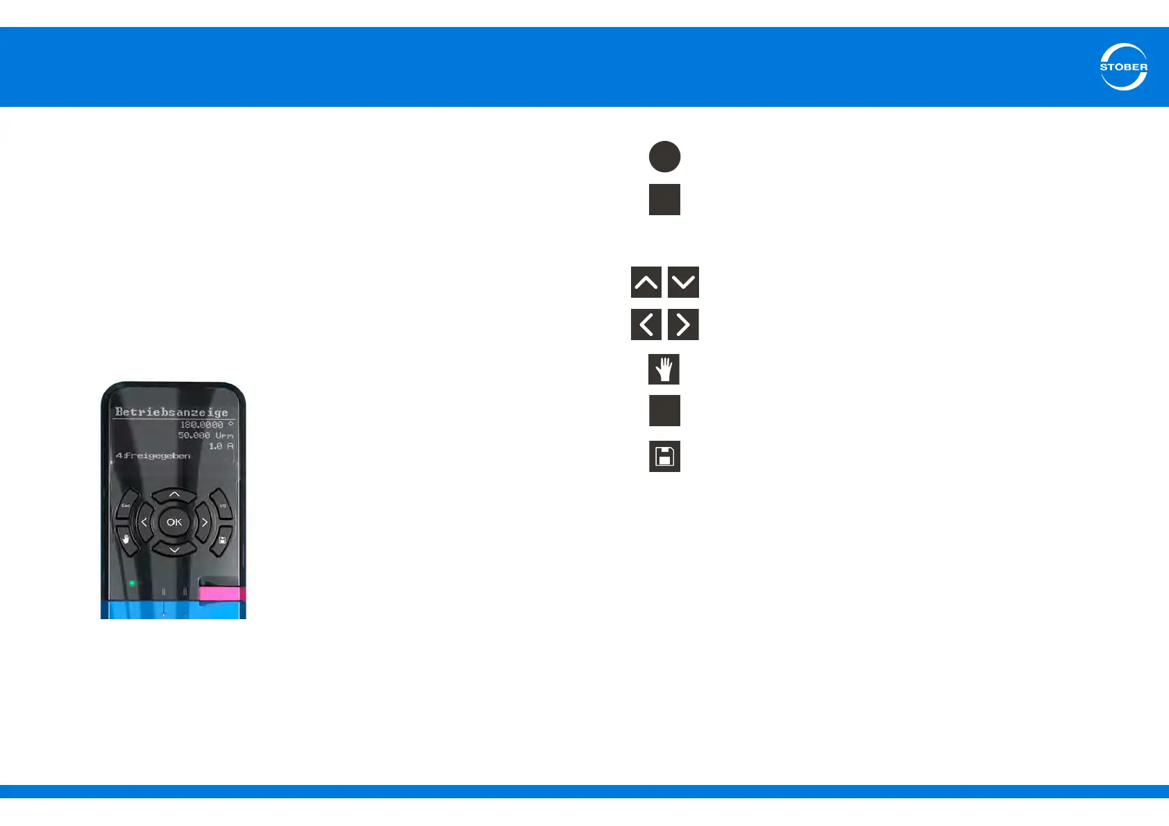 The control unit consists of a graphical display (LCD) and sensor keys.