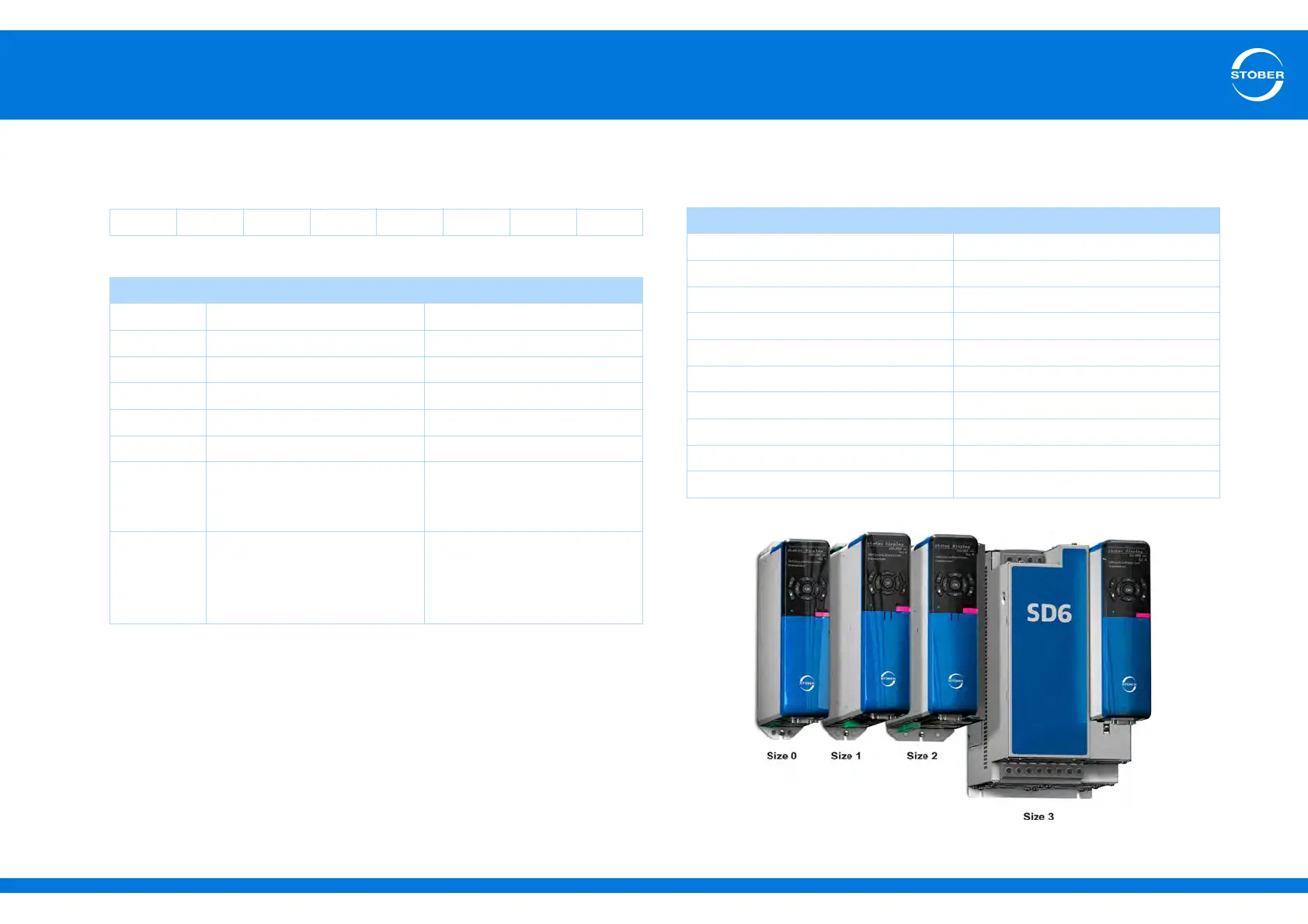 The drive controller SD6 includes the following types and sizes: