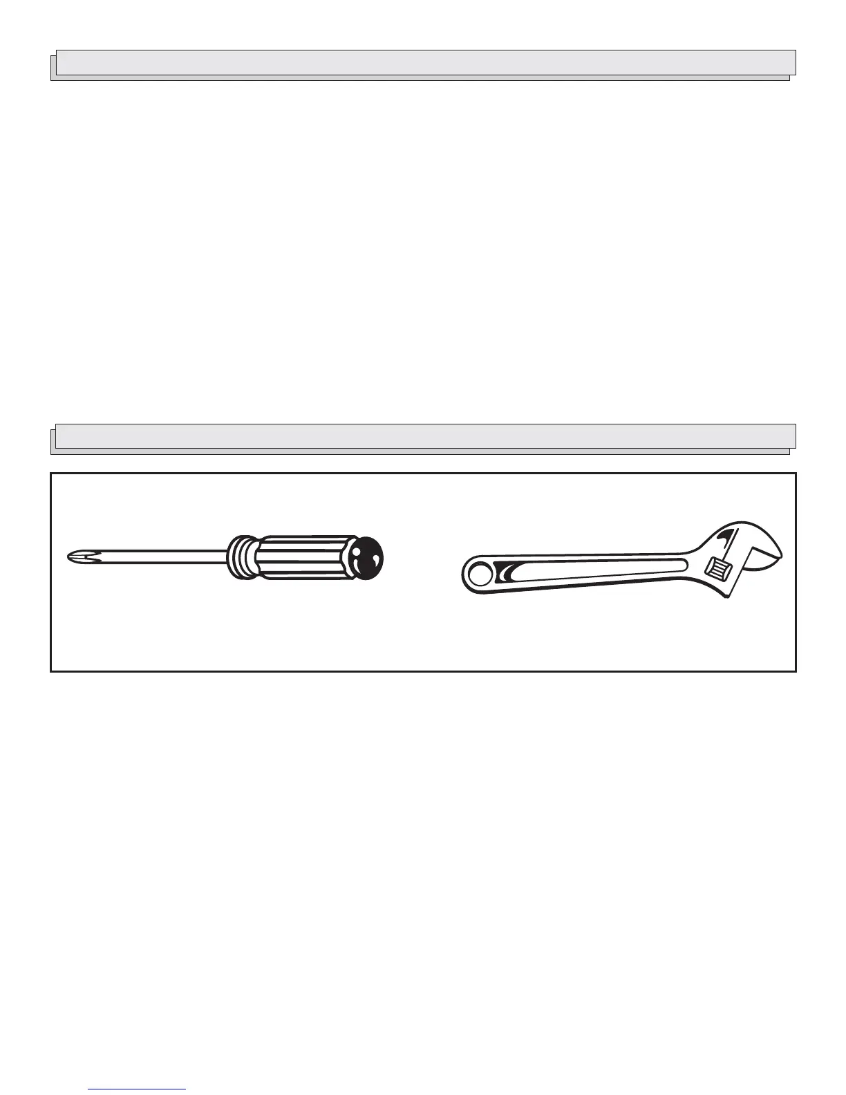The following tools (not included or drawn to scale) are needed for assembly and making adjustments: