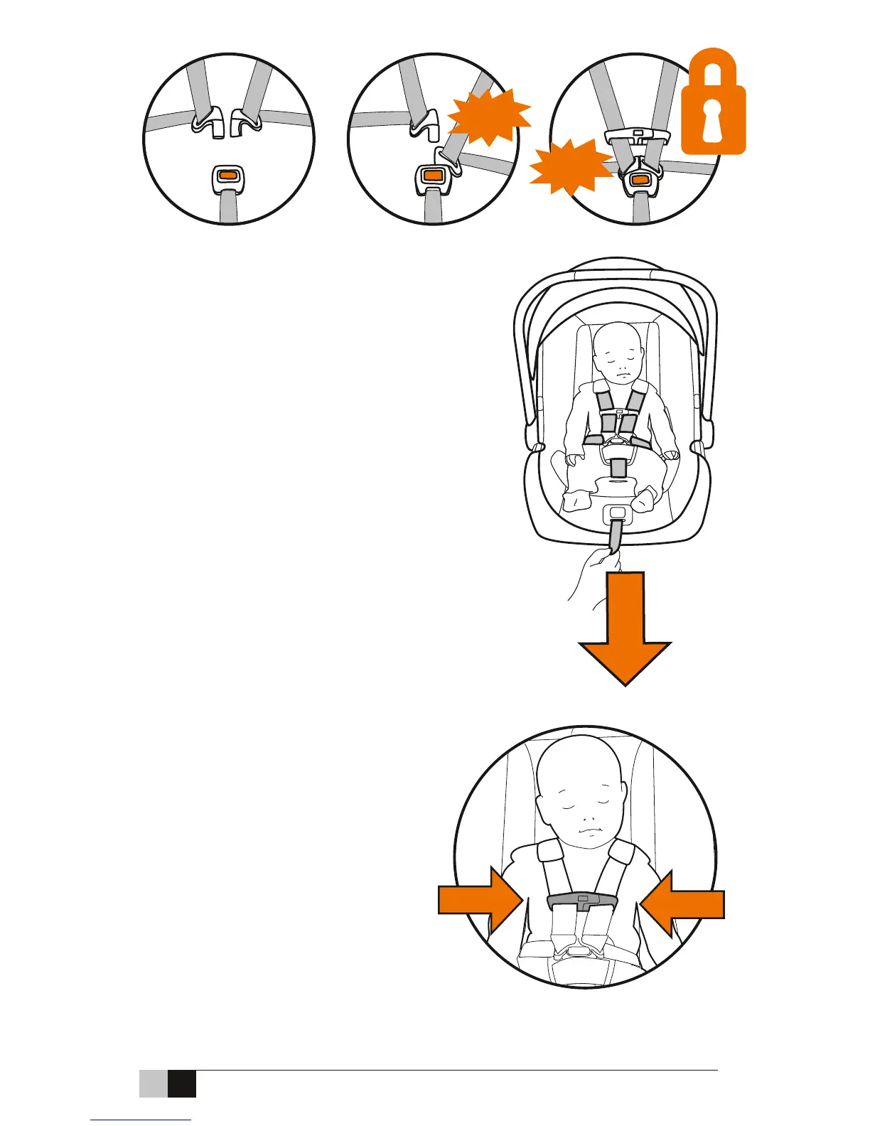 6. Tighten harness by pulling on the adjuster strap. Pull