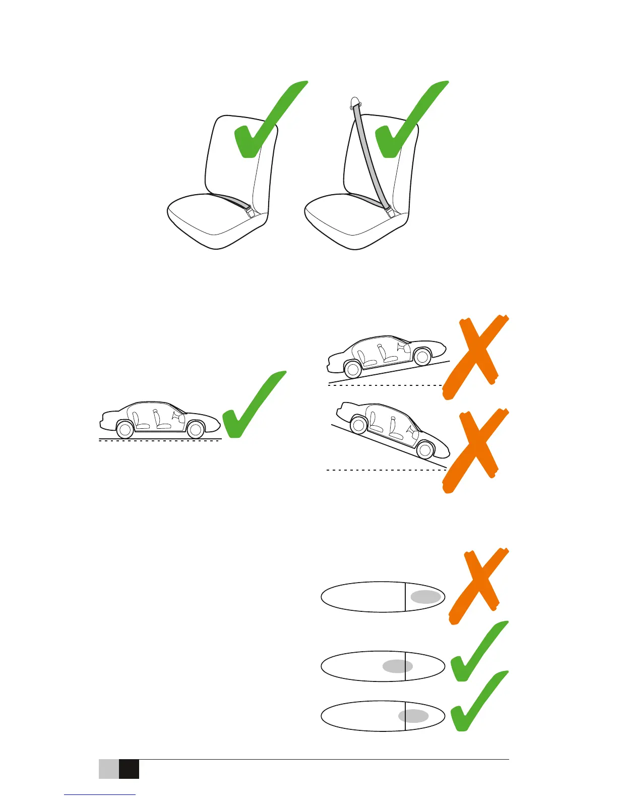 • Position base in a forward facing vehicle