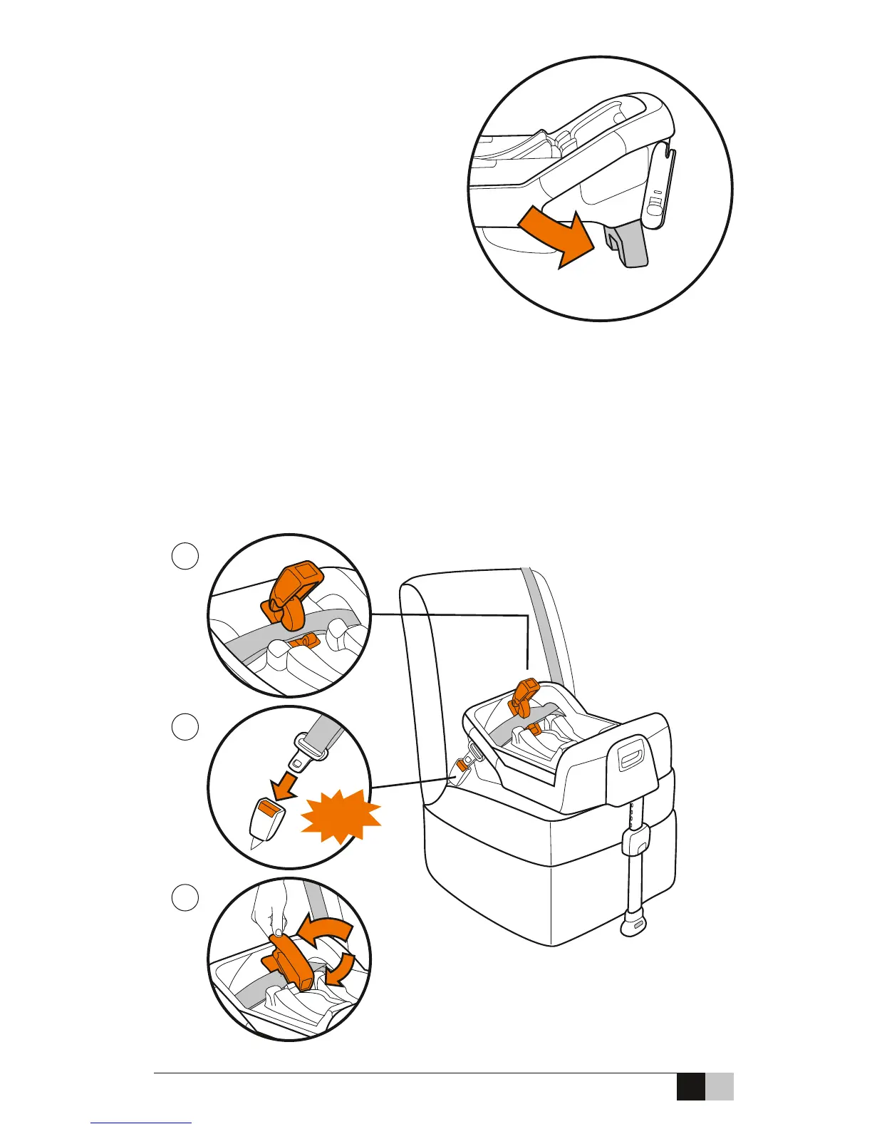 2. Tighten belt while pressing base into vehicle seat.