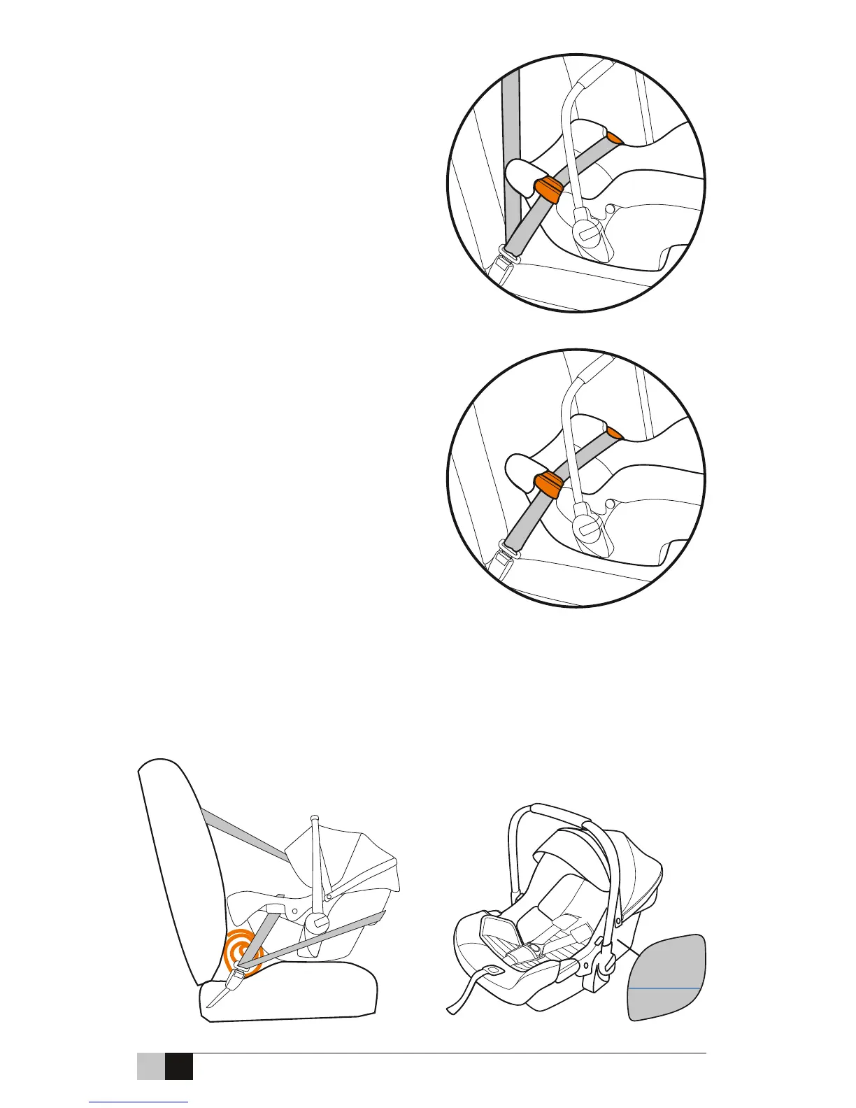 to help adjust the amount of recline. Angle is correct when blue line on carrier is