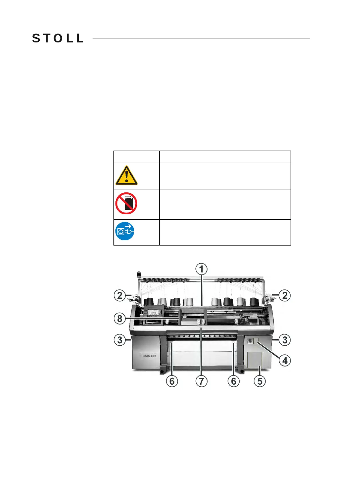 Warnings on the machines correspond to the standard ISO 3864-2.