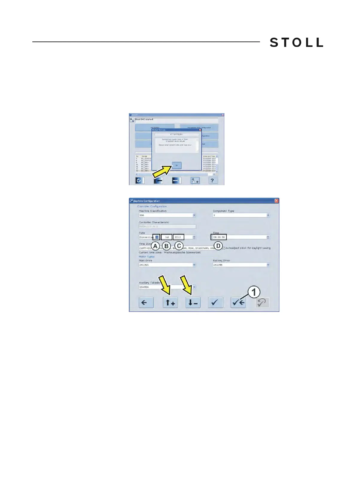 4. Adjust the date (A-C) and the time (D) with the help of the arrow keys.