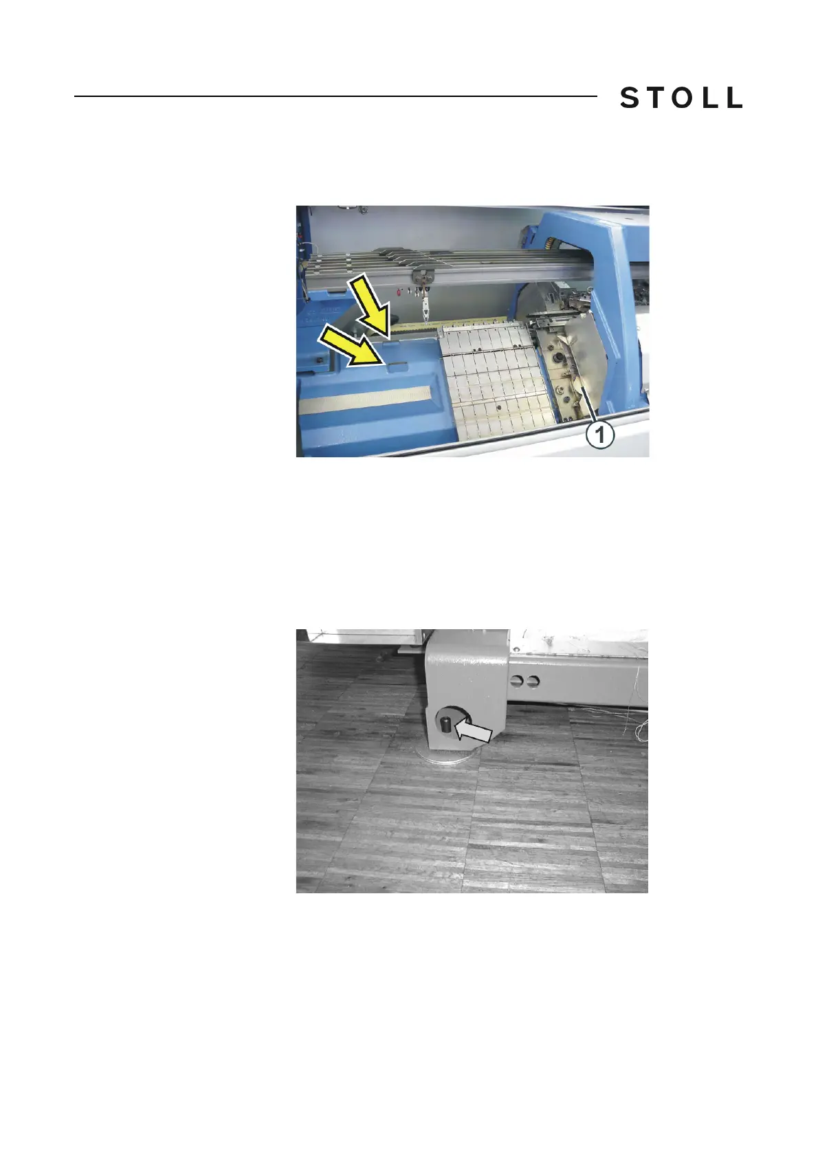 7. If the left edge of the carriage (1) is within the needle bed, press the