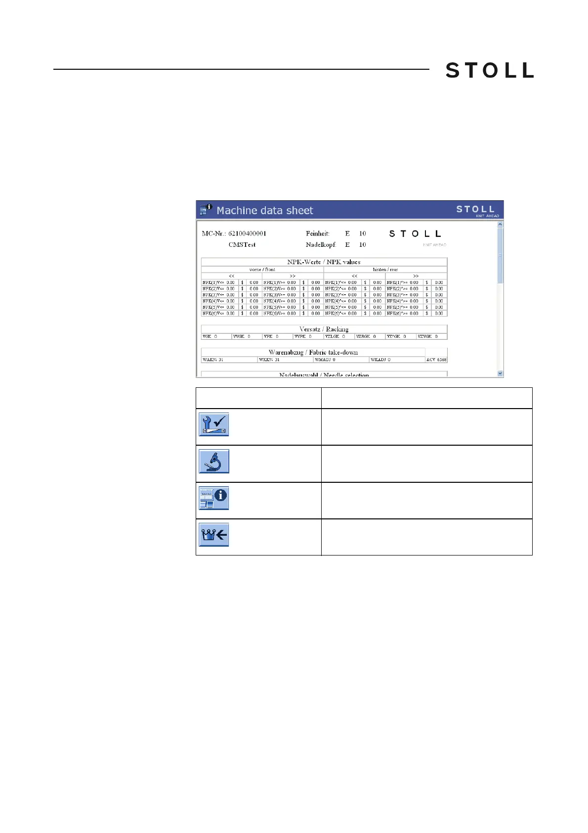 on the "Machine data sheet" key.