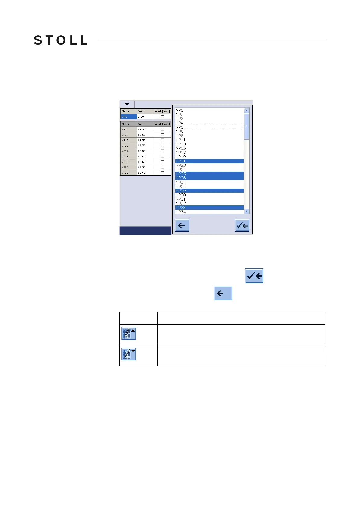 Adding a table row You will find only those entries in the selection list which are not yet part of the