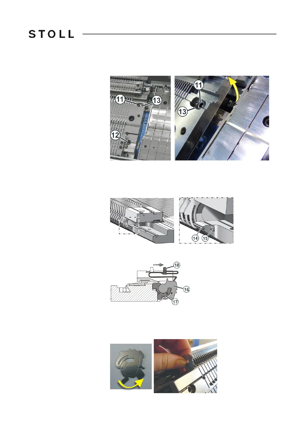 12. On the left and right-hand sides of needle bed, uniformly screw-in the