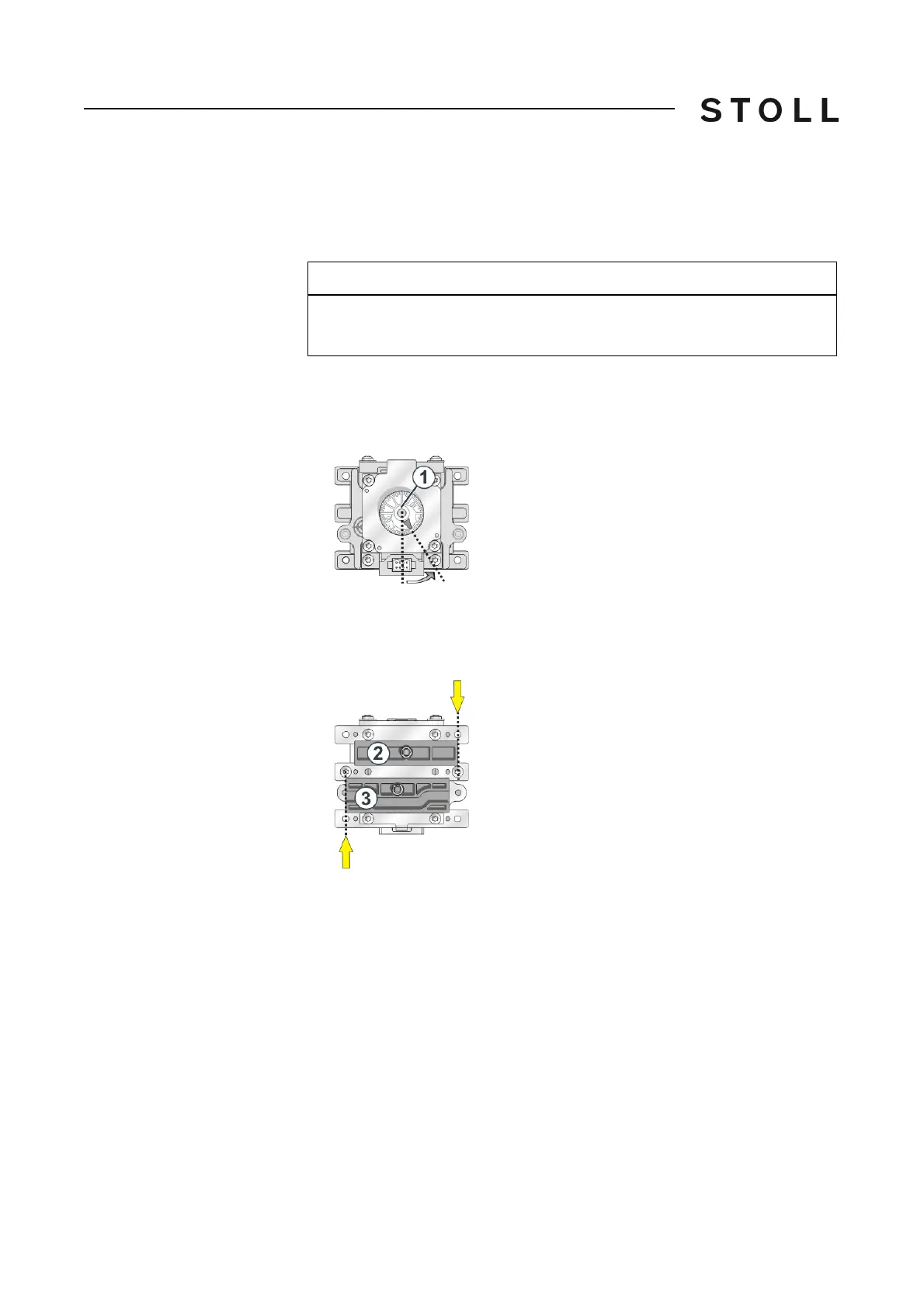 The upper gear rack (2) and the boring are aligned.