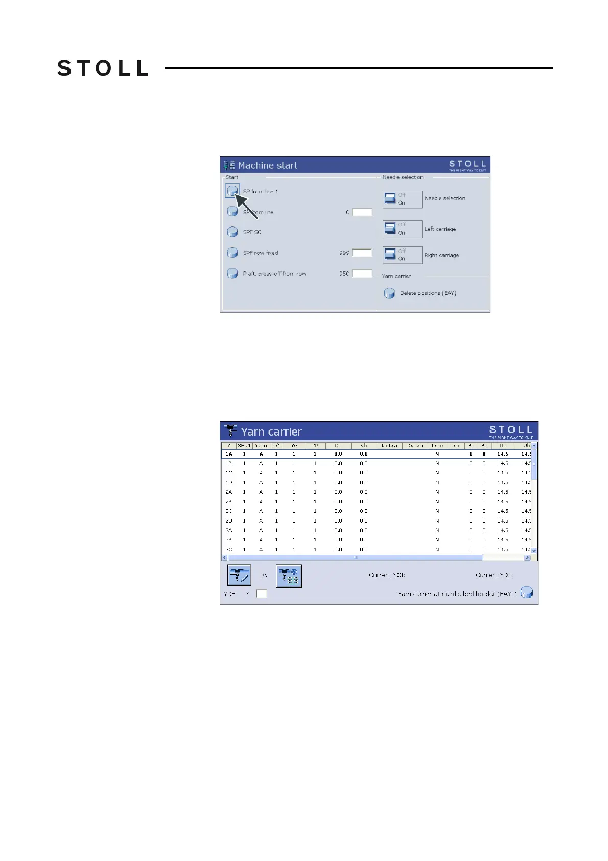 5. On tandem machines also call up the allocation of the yarn carriers to both